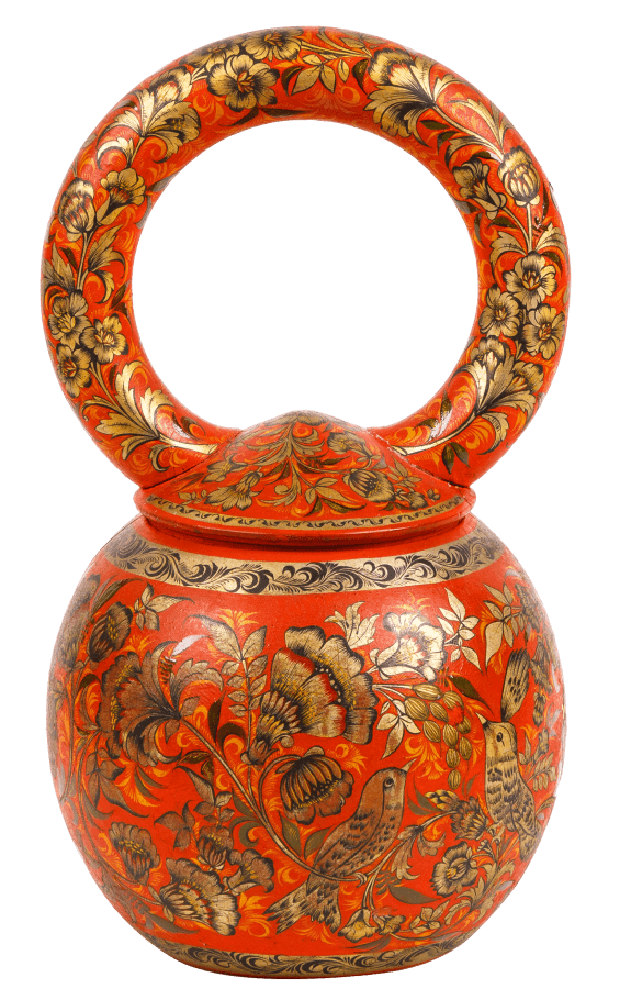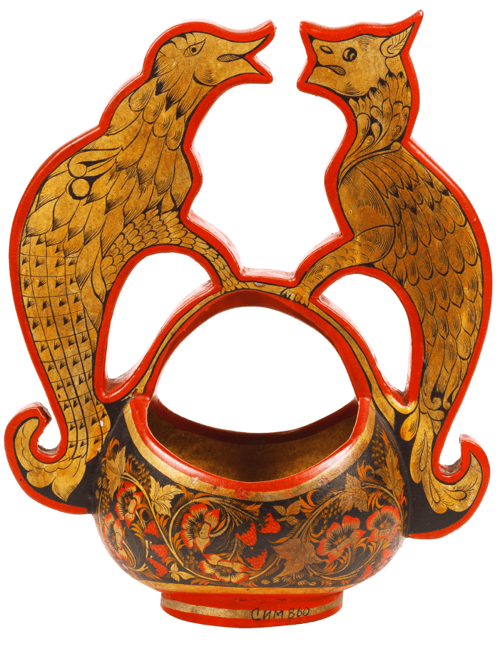 вобравшая в себя опыт многих поколений мастеров: определенная последовательность действий по обработке и оформлению деревянных предметов, которая делает их прочными и долговечными, а также позволяет добиться уникального золотого блеска без использования драгоценных металлов. В экспозиции — предметы разных эпох, дающие представление о том, как совершенствовалось хохломское искусство — от формы до лакового покрытия.